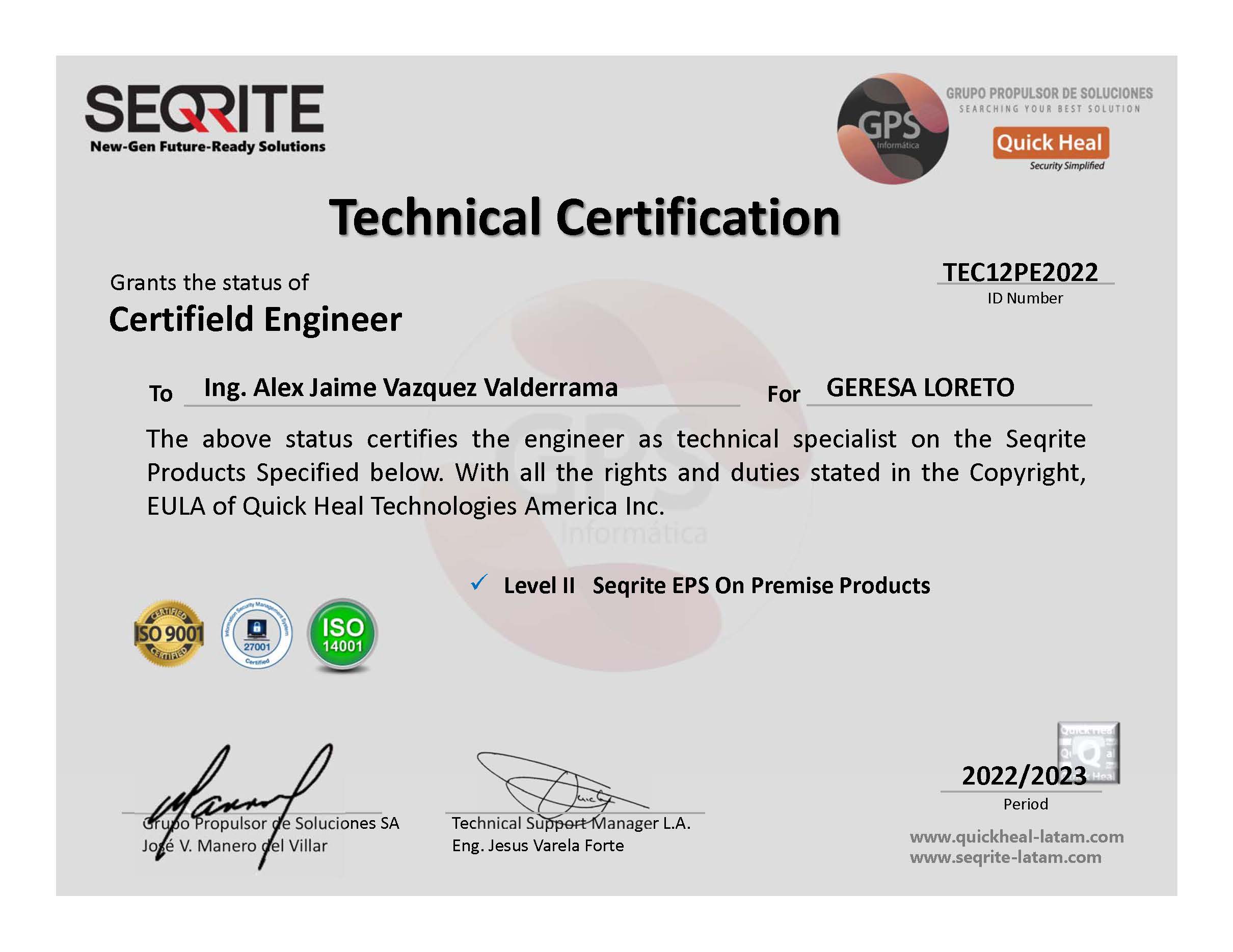 Certificado de capacitación en producto sqrite(antivirus).