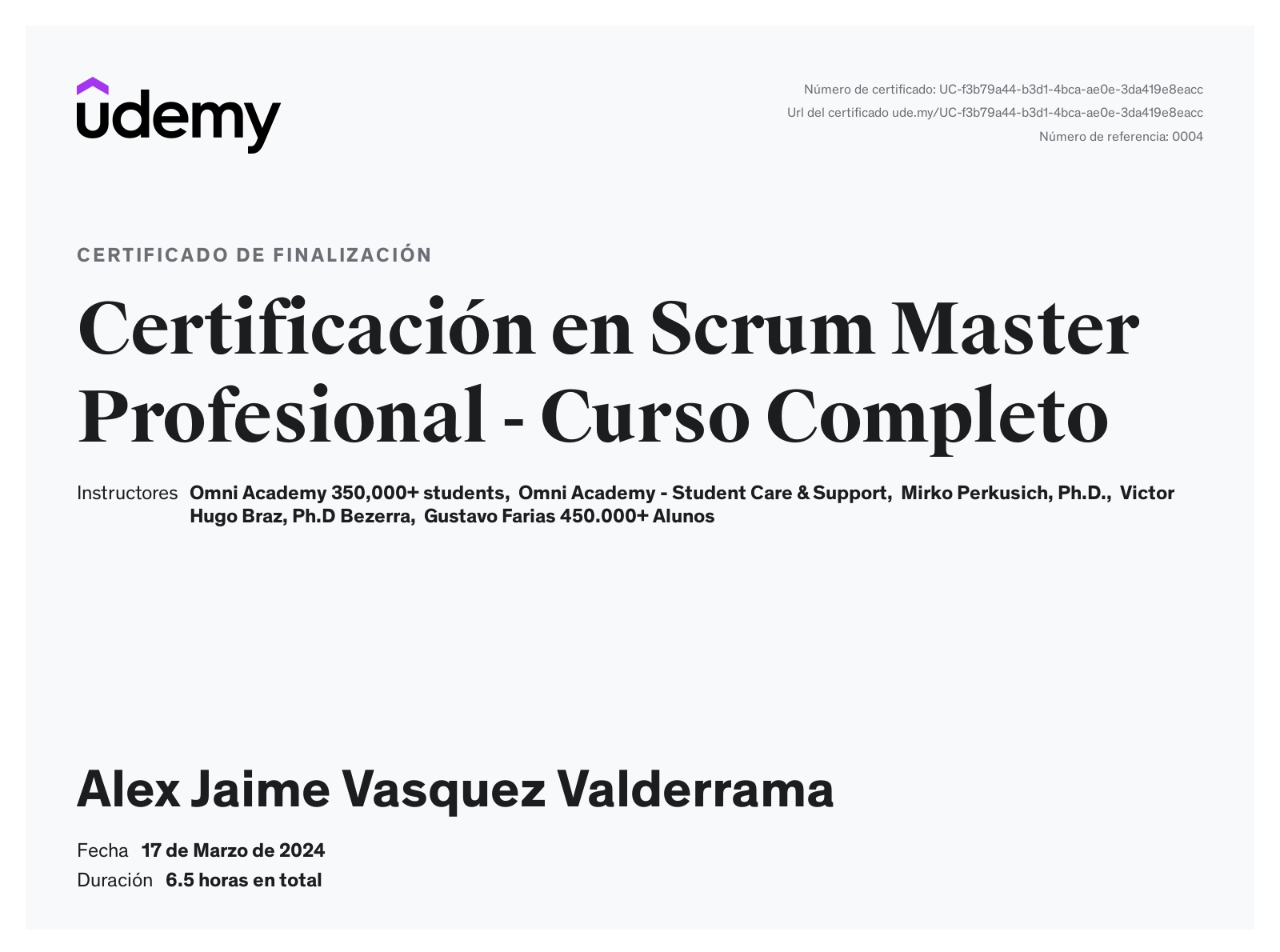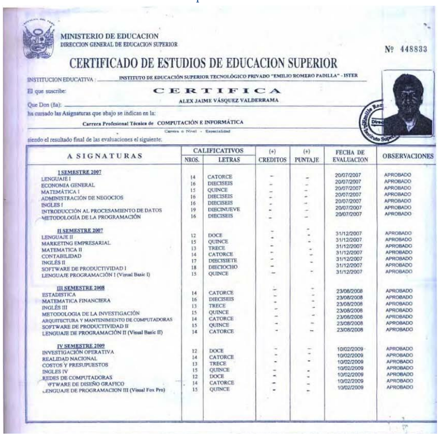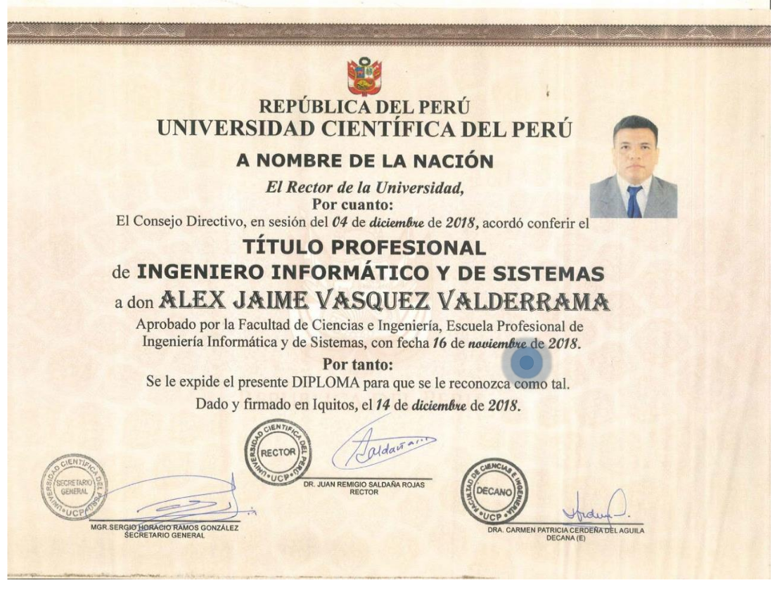 Título Profesional de Ingeniero informático y de sistemas.